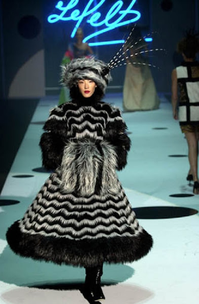 Cruella encounters LePelt at his own fashion show, which is an excuse to have even more wild and wacky costumes by Powell, who perfectly paid tribute to whilst skewering high fashion in the form of these wonderfully ridiculous catwalk getups! Like most of LePelt's costumes, they have patterns themed on big cats fur patterns, but there's some exceptions such as the iridescent blue-ish dress, and the large dress made with what resembles plastic trim!