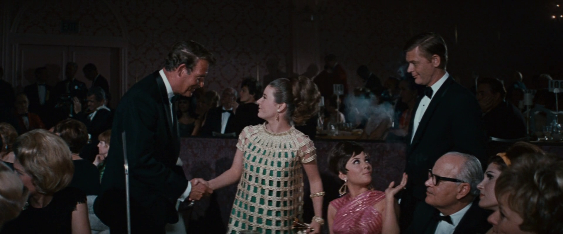 A sordid story of how showbiz grinds its stars into the dirt, Valley of the Dolls is still renowned as a 'camp classic' even though I personally found it rather heavy in some ways! I can only be reminded of 1981's Mommie Dearest, another film with a reputation of being campy nonsense despite being a pretty grim film under the Hollywood glamour. Perhaps it is the wonderfully glitzy costume design that is to thank for Valley's reputation, as Hollywood costume designer Travilla was assigned to design the women's dresses, and given this is a film all about Hollywood, who better to design the fashions than a Hollywood costume designer?The plot focuses on three unlucky (not that they know it at first...) girls who all get to taste fame, with most of the film's depressing events happening to the singer Neely O'Hara (Patty Duke), whose first dress upon reaching stardom is this golden mesh design.